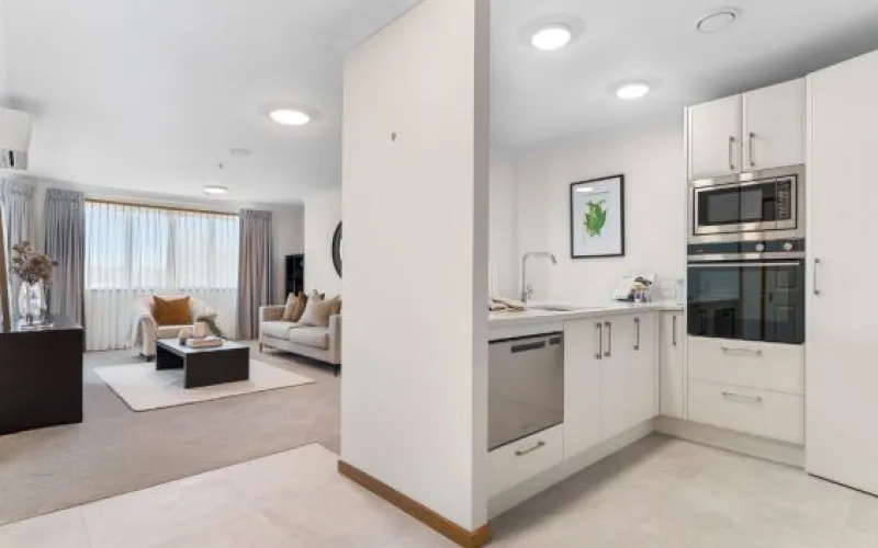 Residents enjoy direct access to Relish Café, the swimming pool, gym and shared lounge spaces, with meals available daily. Each apartment is fitted with nurse call buttons and offers access to additional services and Fairview Care if needs change.