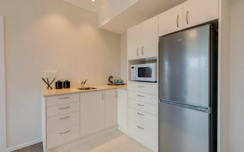 Step into the comfort of your own one bedroom serviced apartment, ideally located in the heart of our vibrant village. Enjoy excellent afternoon sun and peaceful views over native bush, with a glimpse of the Manukau Harbour from your private balcony. This apartment features a practical kitchenette for preparing light meals and a spacious main bedroom with an ensuite bathroom, offering both comfort and convenience.