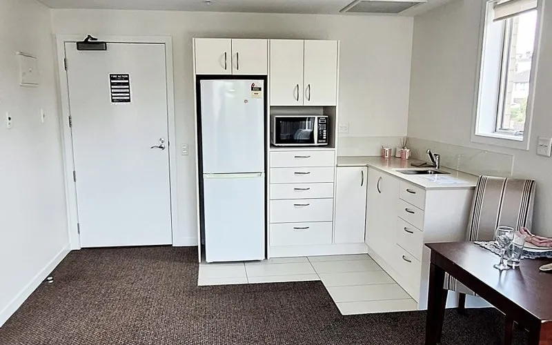 This corner apartment enjoys the benefit of additional east facing windows and receives lovely morning sunshine. Relax in your open plan living area and savour a hot drink as you take in the views of the surrounding village or prepare a light meal in your kitchenette. The apartment has been freshly painted and includes a spacious bedroom with an ensuite bathroom attached, offering privacy and convenience.