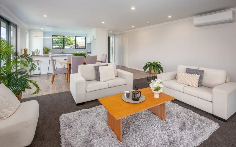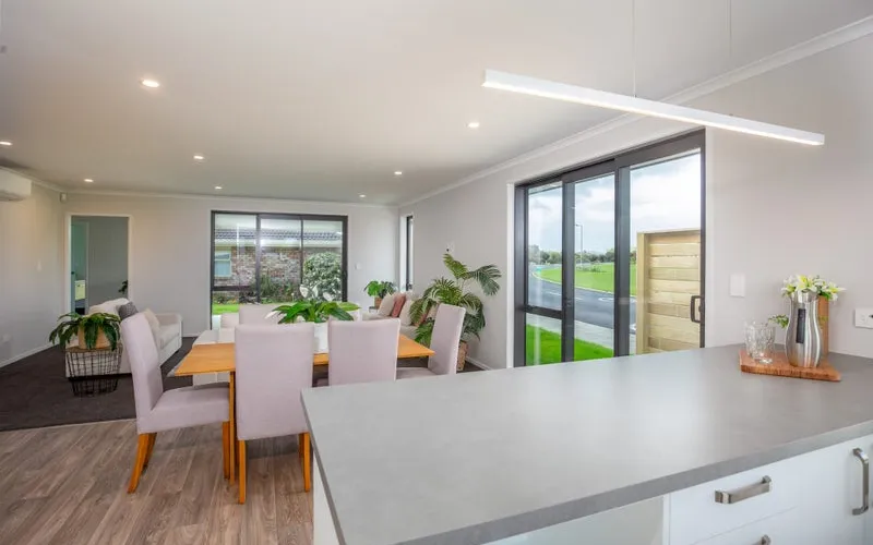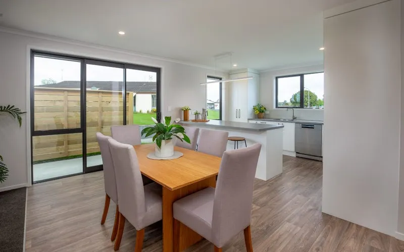 Enjoy comfort in every season with a heat pump in the living room, and keep things sleek with a hidden cupboard for your TV fittings. The dining area also flows outdoors through stacker doors to a private patio, complete with a privacy screen for relaxed alfresco dining.