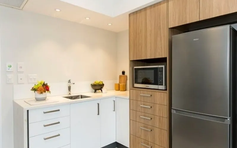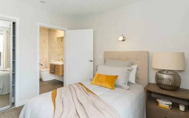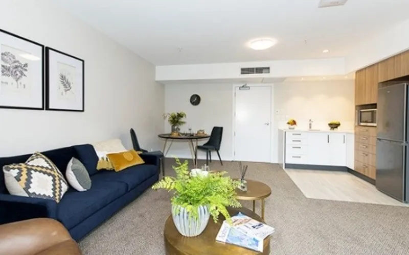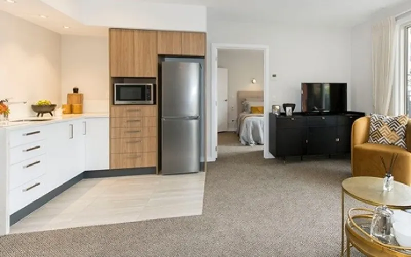 This apartment features a separate bedroom with an ensuite, a fully tiled shower, smart storage solutions, and modern lighting throughout. Centrally located in the heart of the village, down the hall from the activities room, gym, and pool, this serviced apartment is your gateway to enjoying everything the village has to offer.
